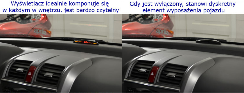 Wyświetlacz wskazuje odległości od przeszkody z rozdzielczością 0,1m