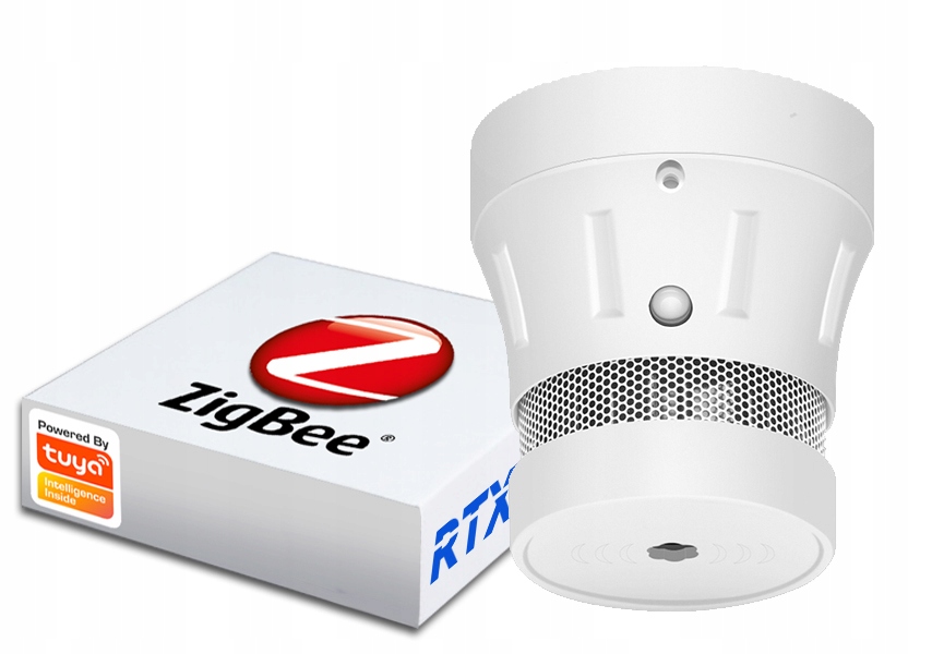 Czujnik Detektor Dymu ZigBee TUYA Smart RTX Czujnik dymu Zigbee v3.0 Tuya Smart Life Urządzenie do detekcji i sygnalizacji obecności dymu w pomieszczeniach z realizacją powiadomienia na smartfon w aplikacji systemu inteligentnego domu Tuya…