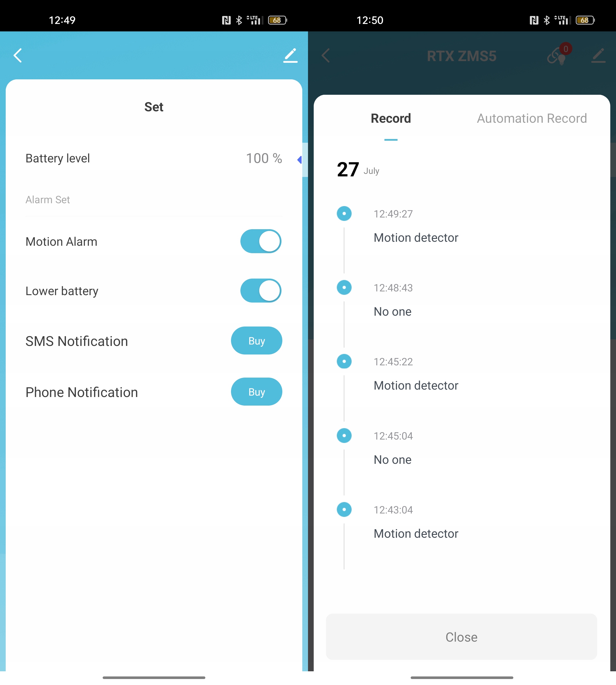 Czujnik współpracujący z centralką ZigBee w ramach aplikacji Tuya Smart Life, wyposażony w wymienne ogniwo litowe CRR345032 ładowane przewodem z USB - nie wymaga zastosowania baterii