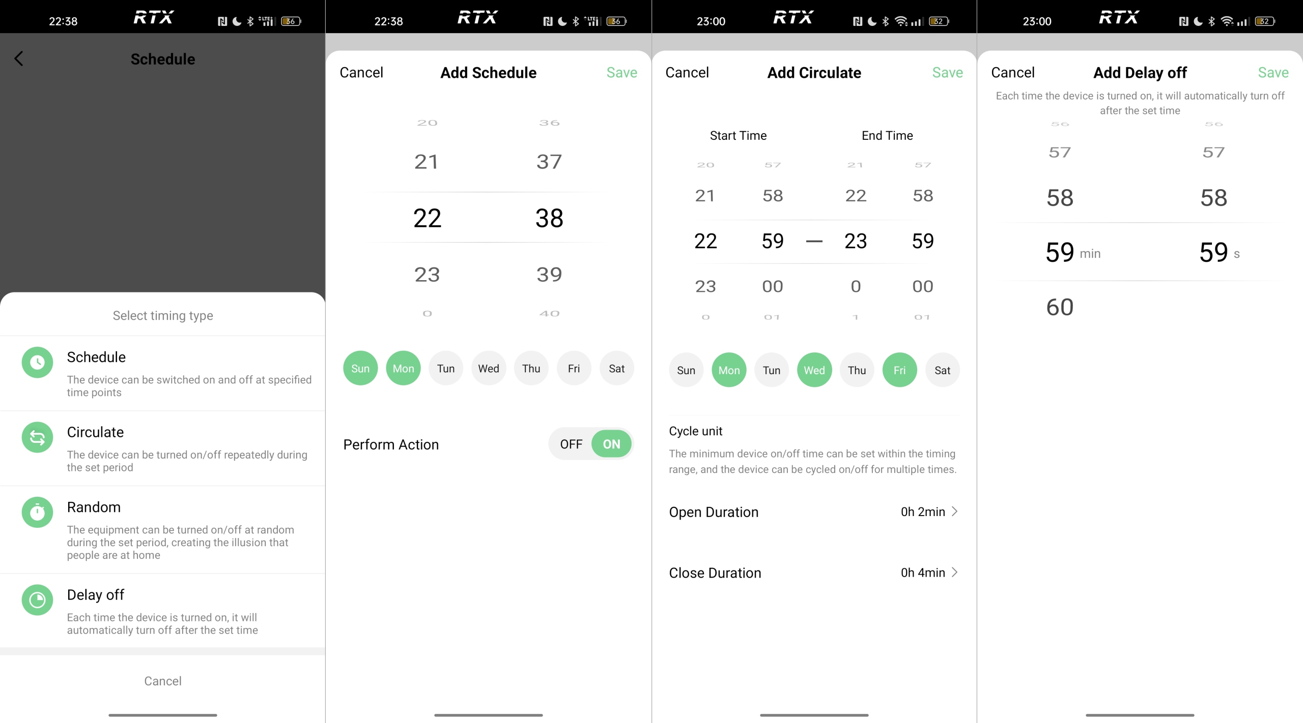 W aplikacji można zrealizować ustawienie działanie automatyczne w czterech trybach: