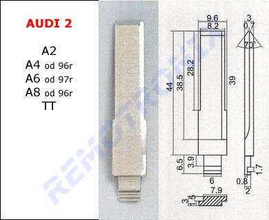 Prosimy o dokładne zmierzenie swojego kluczyka i porównanie z wymiarami przedstawionymi na rysunku technicznym. Z uwagi na różne kluczyki stosowane przez producentów w tych samych modelach pojazdów prosimy nie podawać modelu swojego auta, należy podać numer z rysunku grotu.