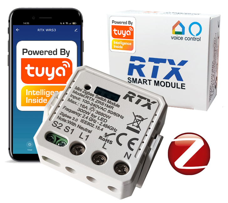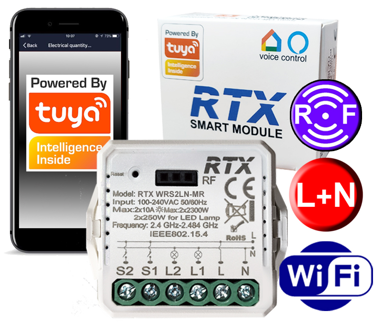 RTX WRS-E2 Uniwersalny moduł przeznaczony do inteligentnego sterowania oświetleniem za pomocą telefonu z Android lub iOS z każdego miejsca na świecie za pomocą najpopularniejszej i darmowej aplikacji do Inteligentnego Domu - Tuya Smart Komunikacja…