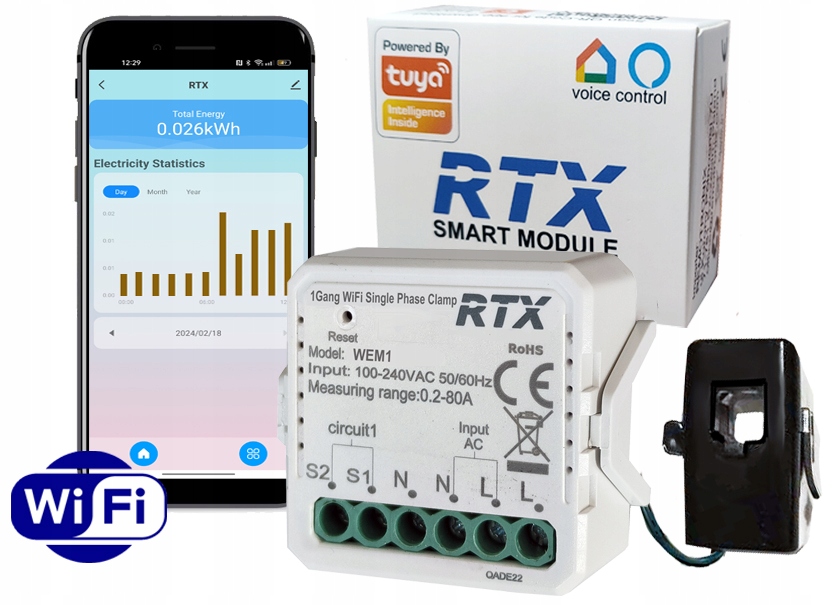 MODUŁ RTX LICZNIK ENERGII -MIERNIK NAPIĘCIA PRĄDU MOCY Z PRZEKŁADNIKIEM 80A ⭐ Moduł pomiaru energii z przekładnikiem 80A WiFi TUYA➡️ Licznik z przekładnikiem - umożliwia pomiar energii bez ingerencji w pomiarowany…
