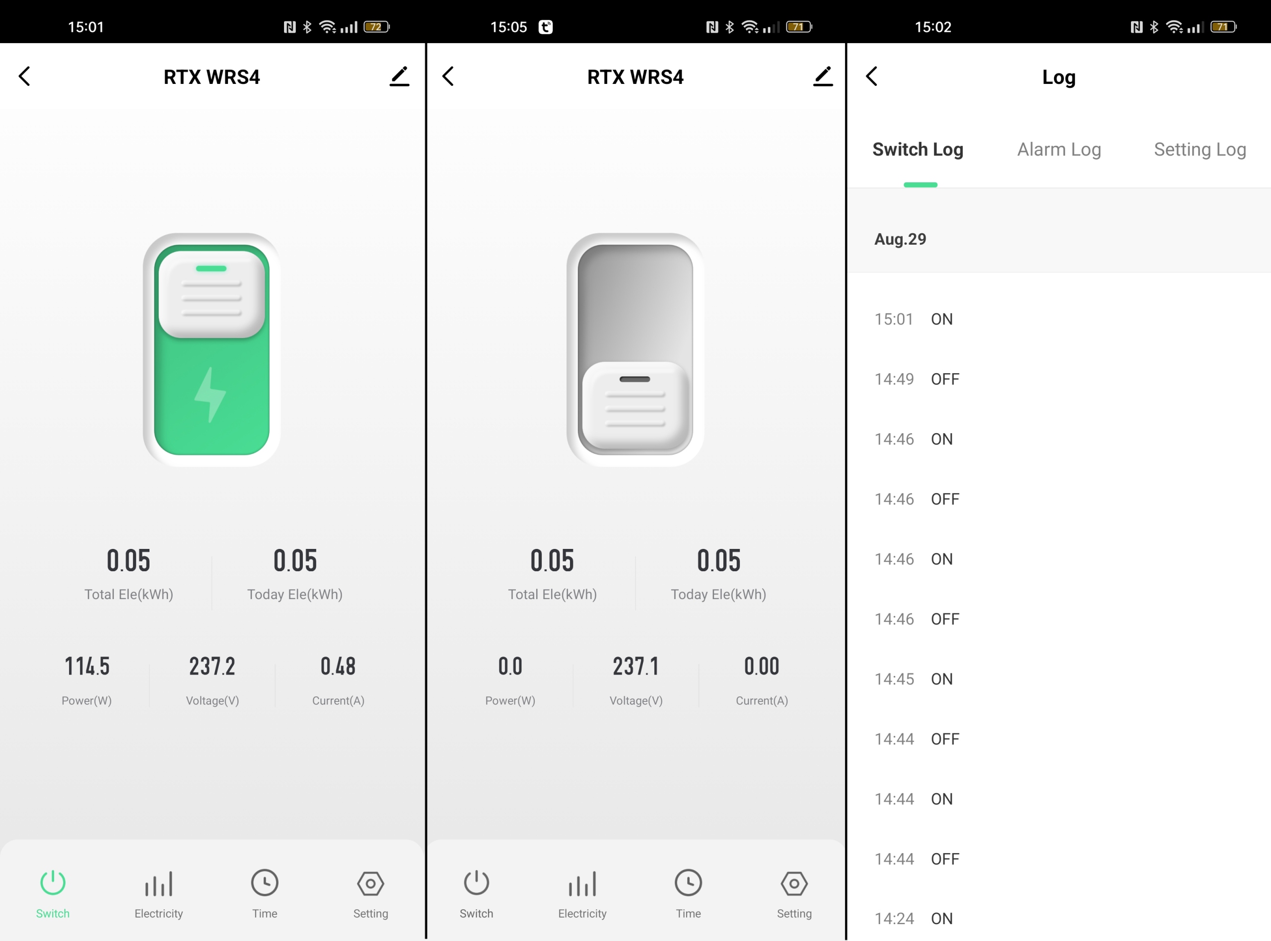 Załączenie z urządzenia mobilnego powoduje mechaniczne przełączenie wbudowanego przekaźnika i załączenie prądu.
