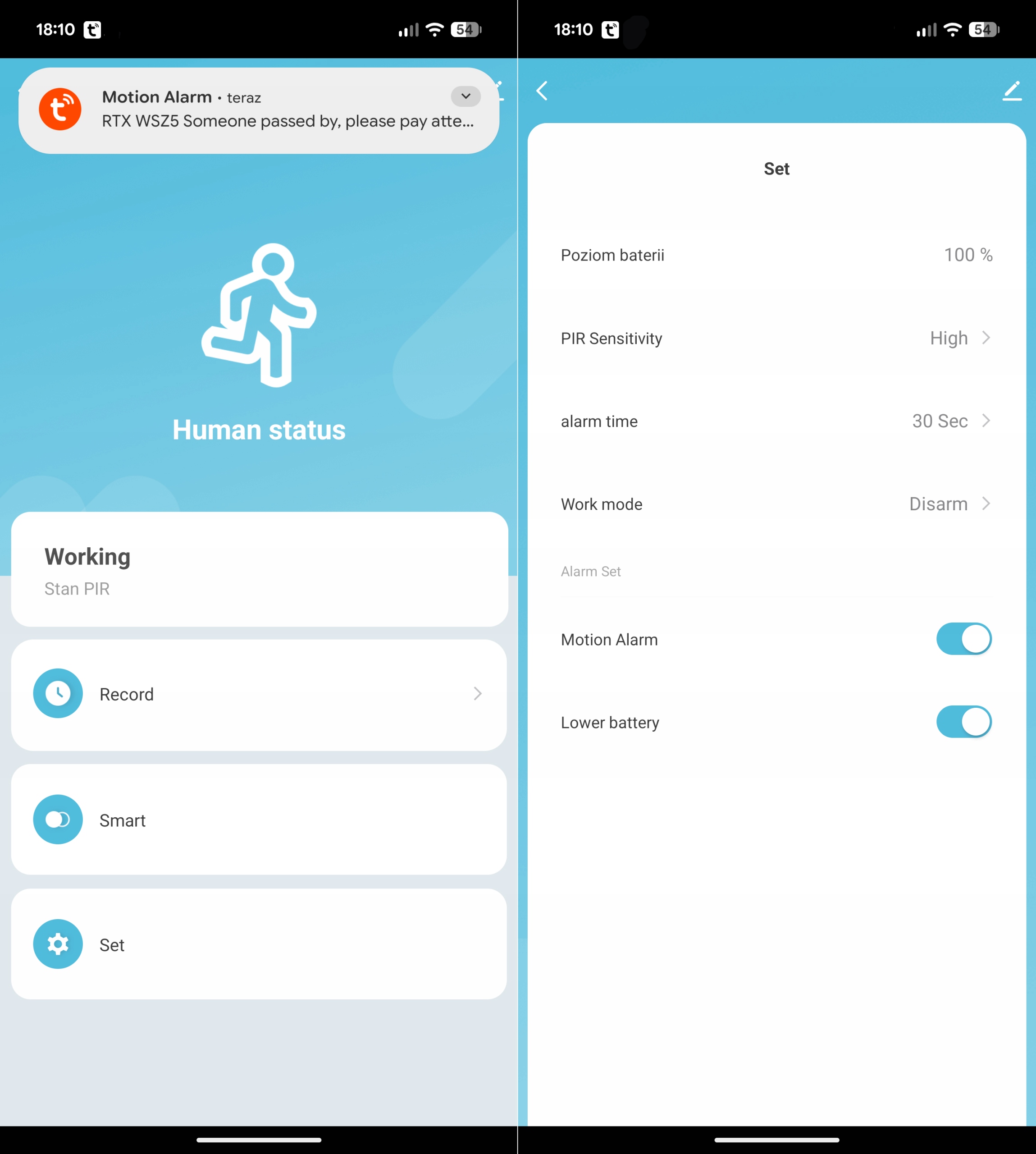 Urządzenie można powiązać z dowolnym czujnikiem tworząc scenariusz sygnalizacji alarmowej
