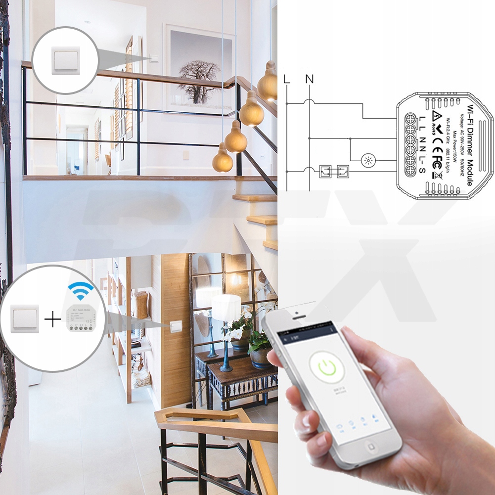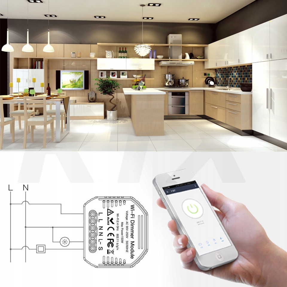 ➡️ Moduł WiFi przeznaczony do rozbudowy tradycyjnego przycisku o możliwość inteligentnego sterowania natężeniem światła oraz obsługi zdalnej z aplikacji na smartfonie