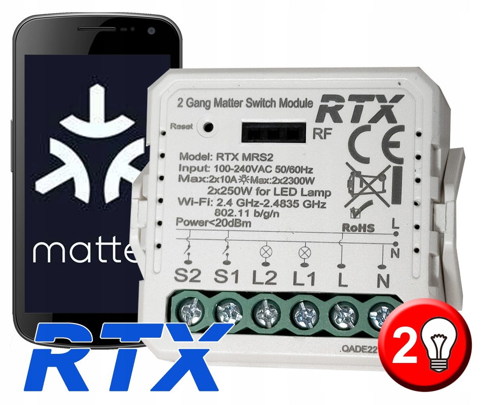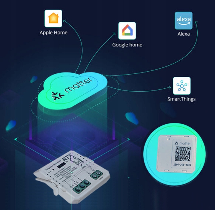 ➡️ Sterownik marki RTX obsługujący technologię Matter możesz skonfigurować z Apple HomeKit, Google Assistant lub Amazon Alexa nie martwiąc się o kompatybilność.