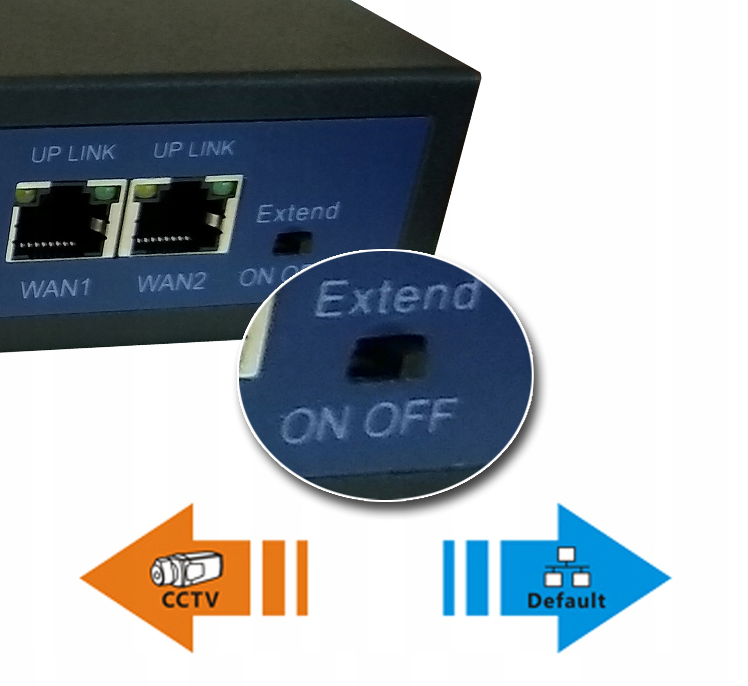 Daleki zasięg transmisji i zasilania- funkcja CCTV-Extend pozwala na stworzenie sieci o zasięgu do 250m