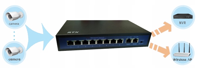Daleki zasięg transmisji i zasilania- funkcja CCTV-Extend pozwala na stworzenie sieci o zasięgu do 250m.