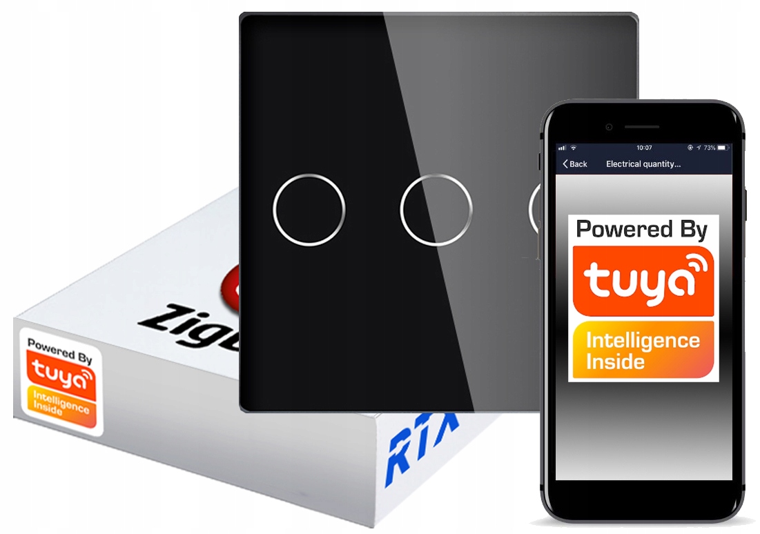 Ekskluzywny włącznik dotykowy, który po zastąpieniu tradycyjnego włącznika światła umożliwi realizację inteligentnego sterowania oświetleniem oraz obsługi zdalnej na smartfonie przez najpopularniejszą aplikację inteligentnego domu- TUYA Smart Life . Steruje 3-ma obwodami światła.